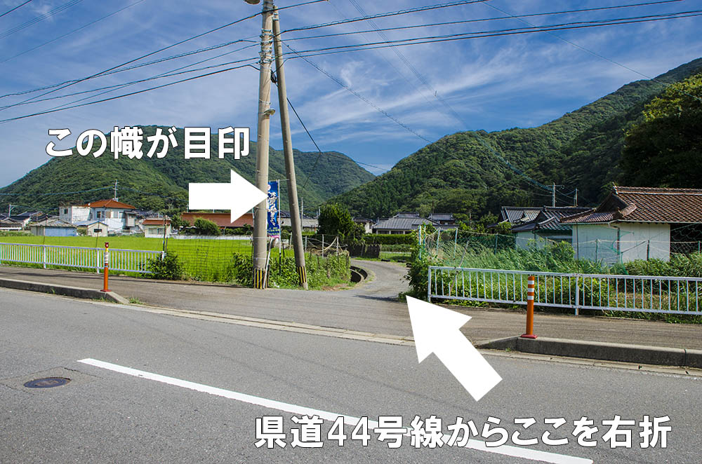 | 道案内その1 | 県道44号線を西に進み、青いノボリが見えたら右折![]() |
