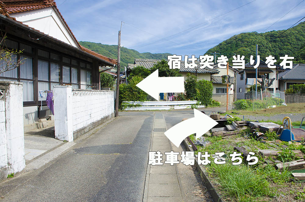 | 道案内その2 | 突き当りの手前右側の駐車場に車を停めてください。![]() |
