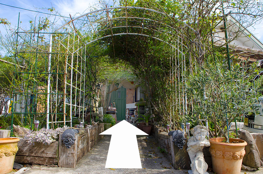 | 道案内その3 | このアーチの奥が玄関です。![]() |